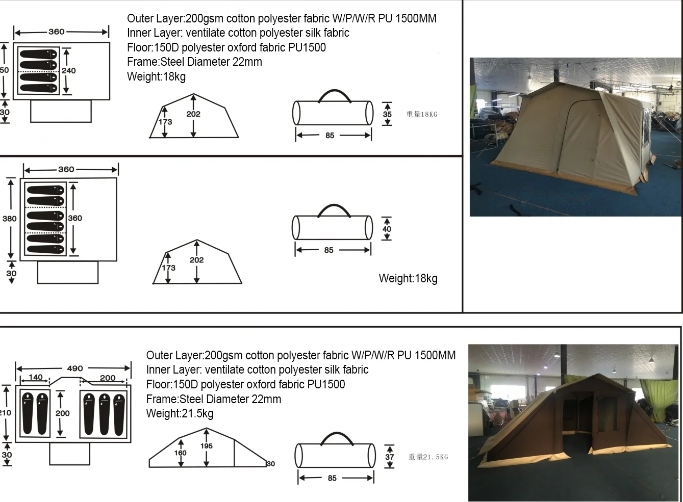 Two Bedrooms and One Living Room tents camping outdoor large family canvas tent for 5 person