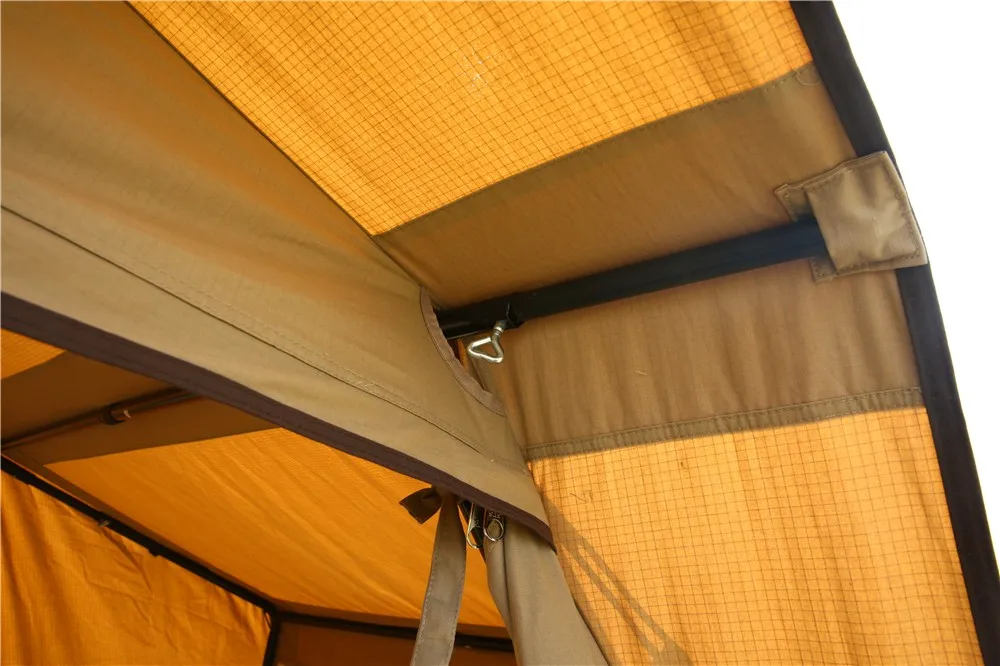 2.Divided rooms.The space of this family tent is divided for sleeping, living and porch. It is good for a group of people especially when need to separate the genders when sleeping. The bed rooms is able to take 4-6 people.