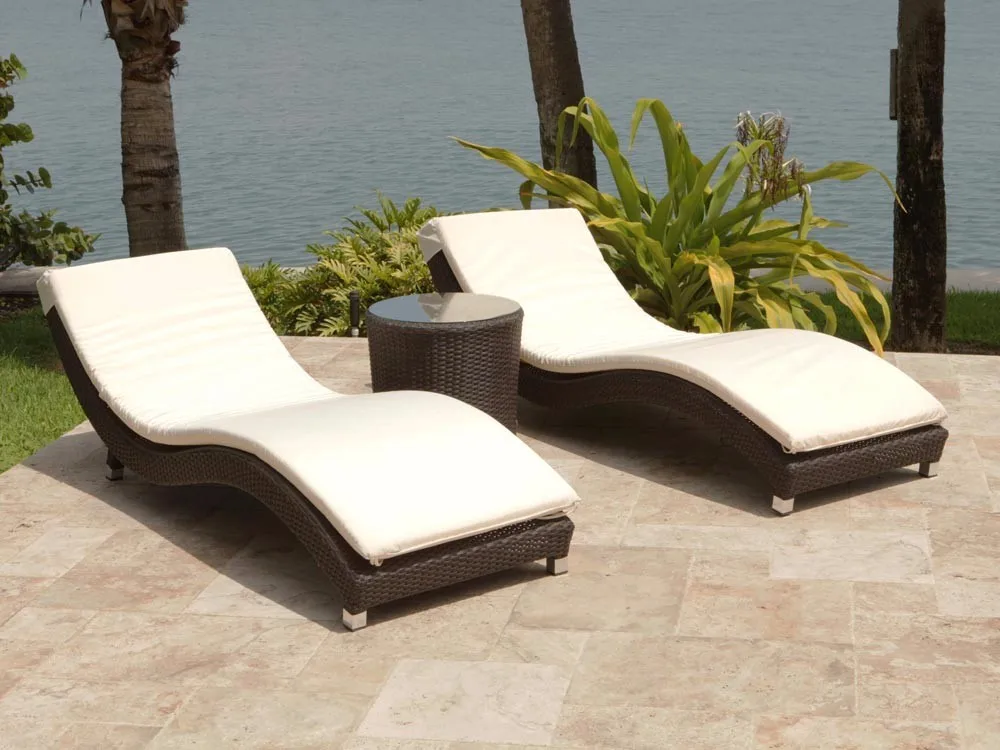 Morden Durable Outdoor Beach Rattan Bed Swimming Pool Wicker Sunlounger