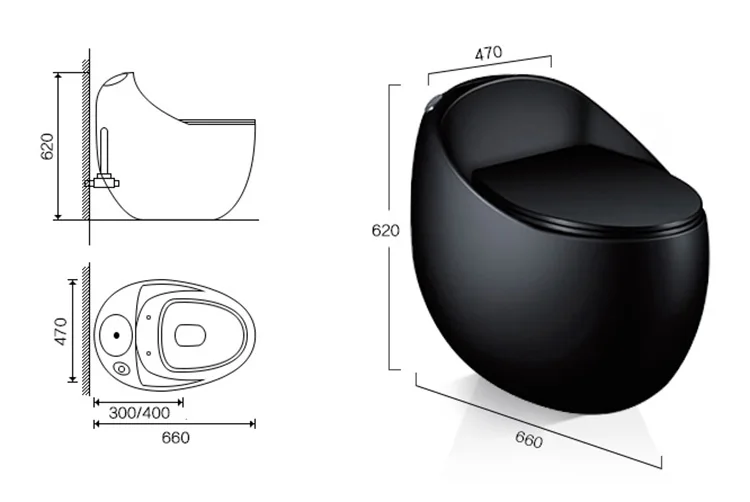 首页 浴室产品、水槽 马桶以及其他陶瓷洁具 马桶 Matt Black Color Egg Shape Siphonic ceramic washdown One Piece Toilet
