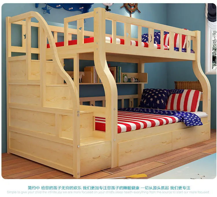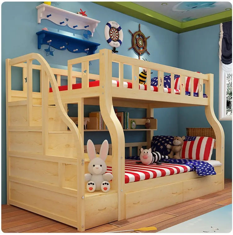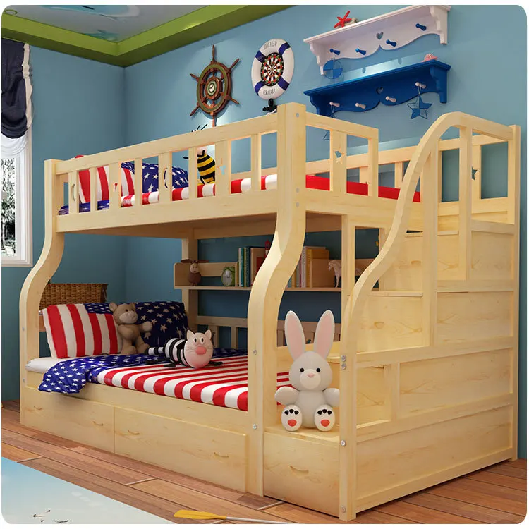 children kid bunk beds with stairs cheap and durable safely solid wood beds for double student in dormitory CB21-5