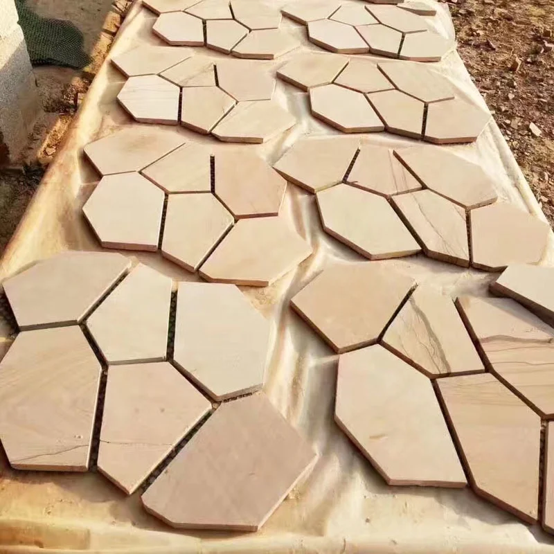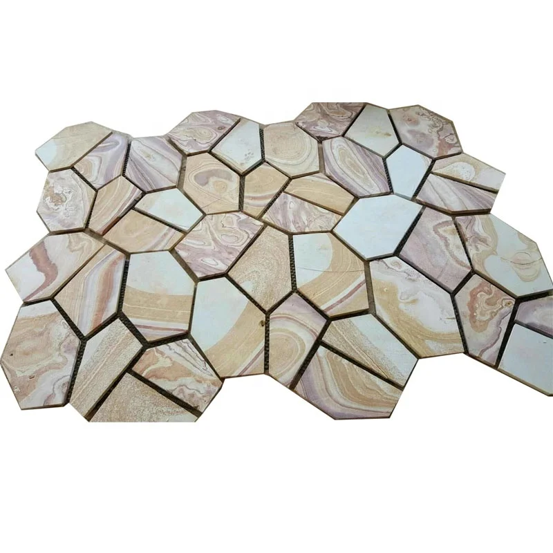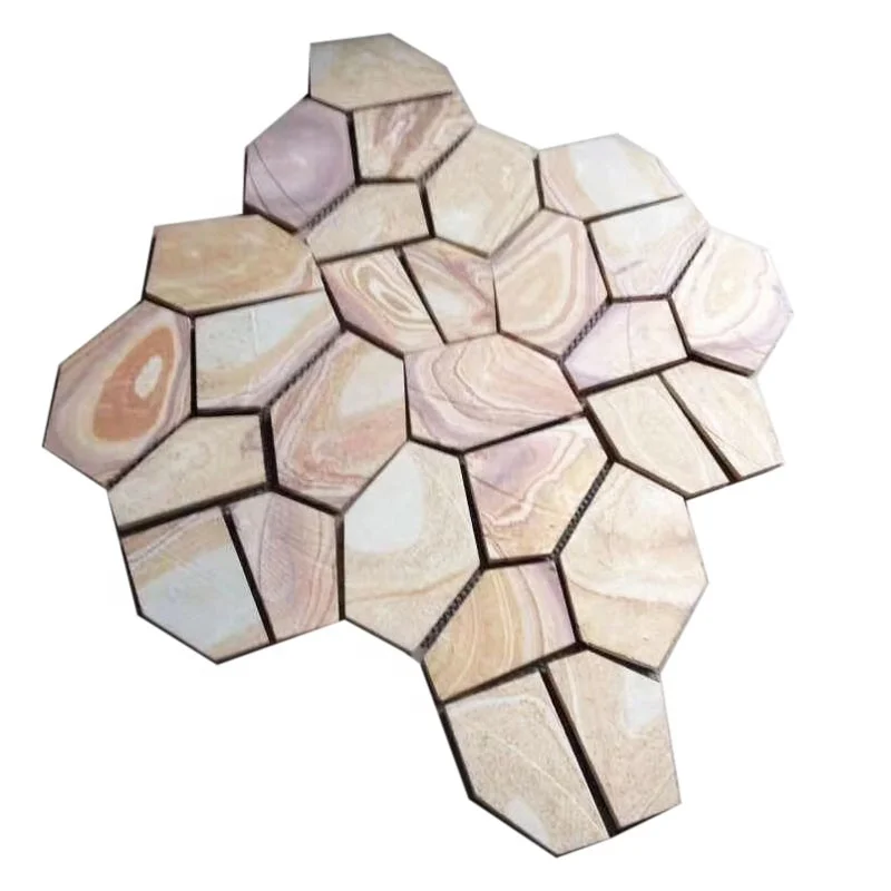 Teakwood Sandstone Exterior Natural flagstone mat mesh paver stone tile