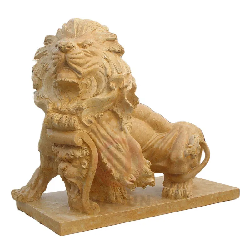 Big marble natural stone lion sculpture statue with shield