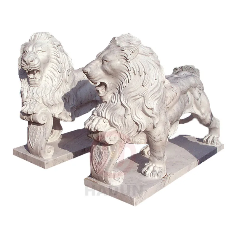 首页 户外生活、家用光伏发电 户外家具 石雕石刻 Big marble natural stone lion sculpture statue with shield
