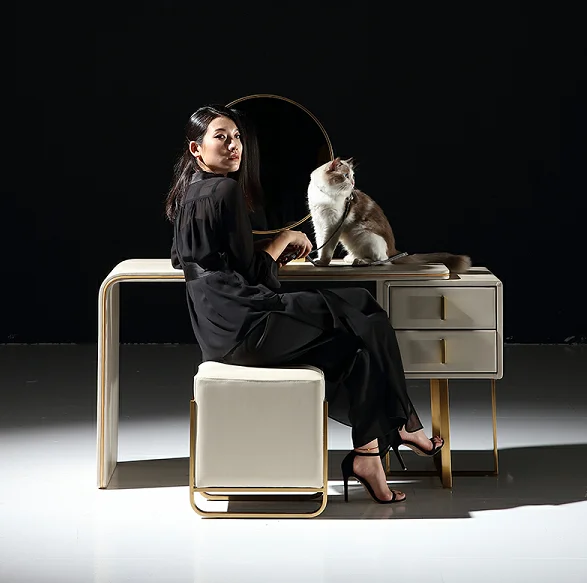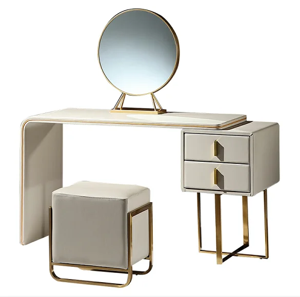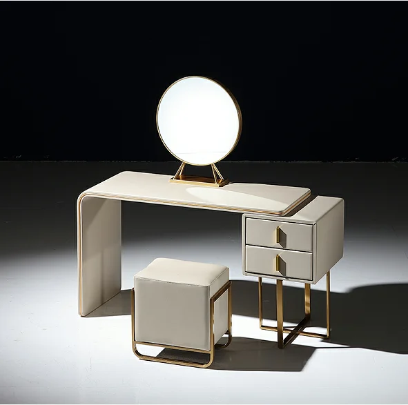 New modern style bedroom furniture leather toilet table luxury dresser bedside table with mirror BO0203