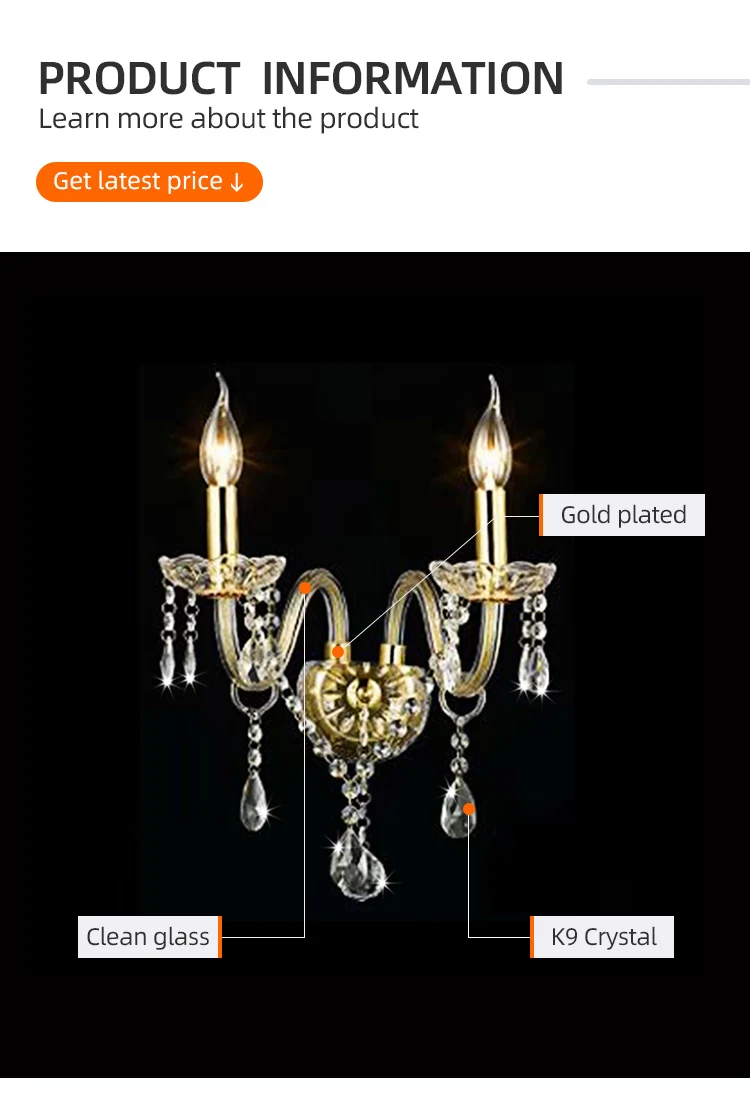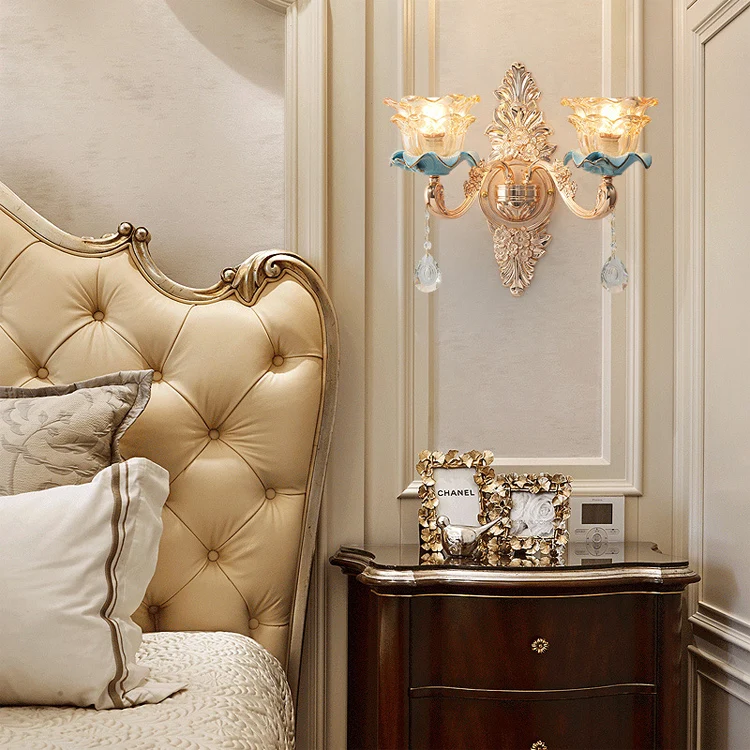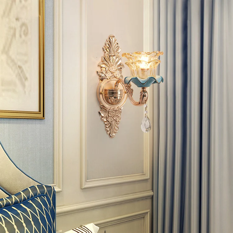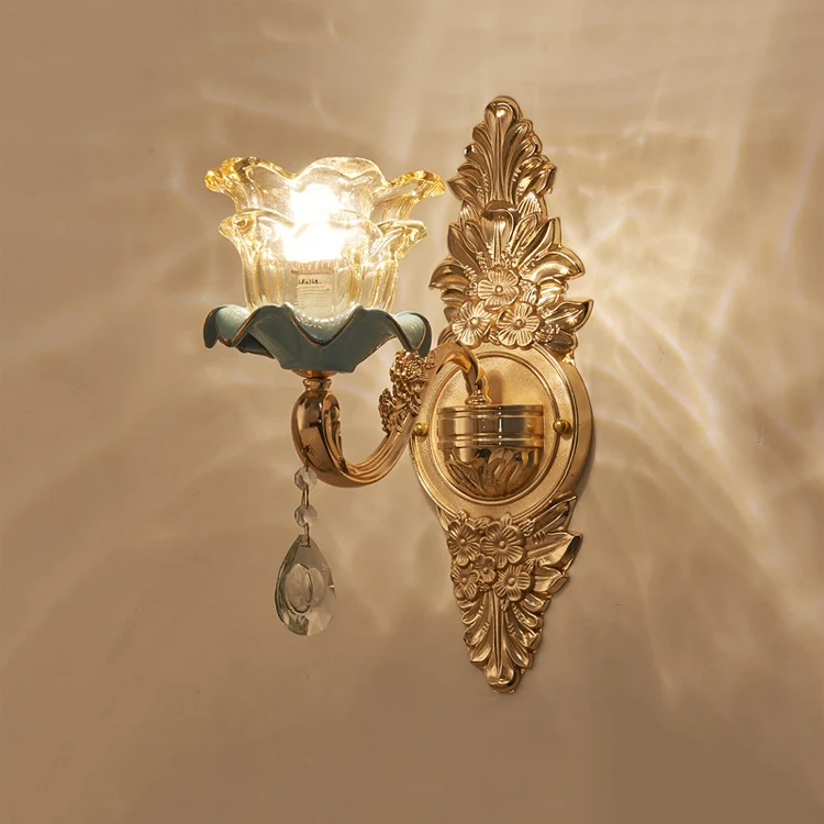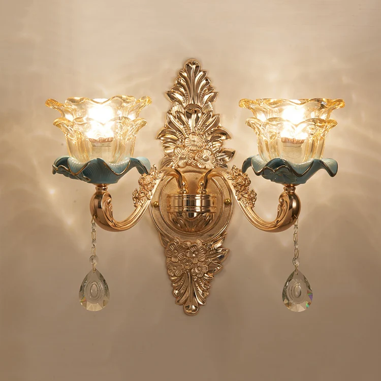 European Style Iron Glass Shade Luxury Indoor Home Hotel decoration Modern Glass Wall light
