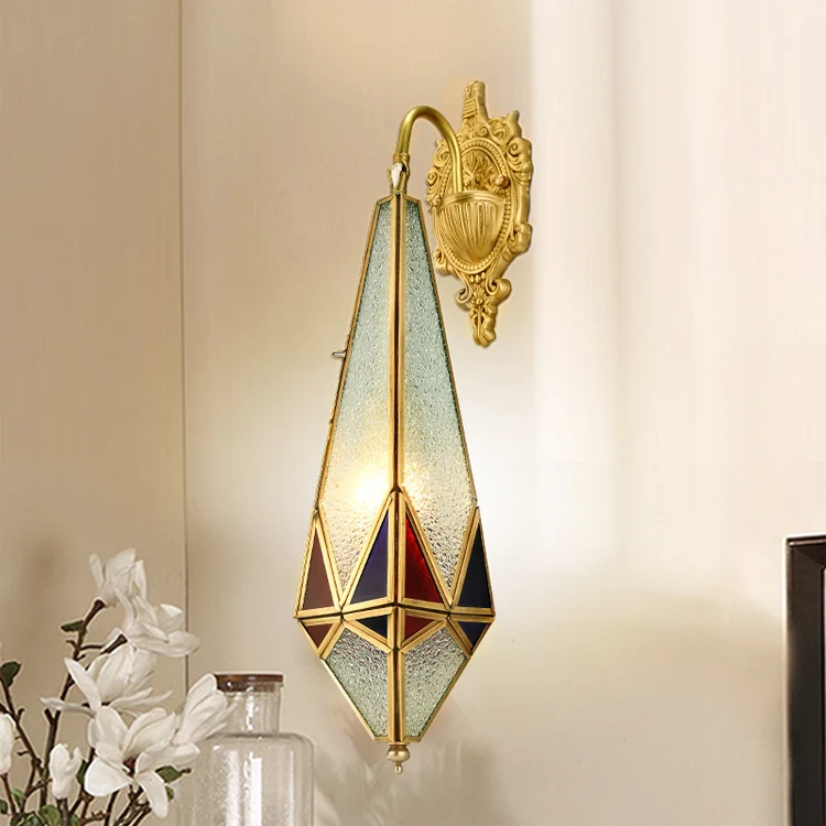 European Style Iron Glass Shade Luxury Indoor Home Hotel decoration Modern Glass Wall light