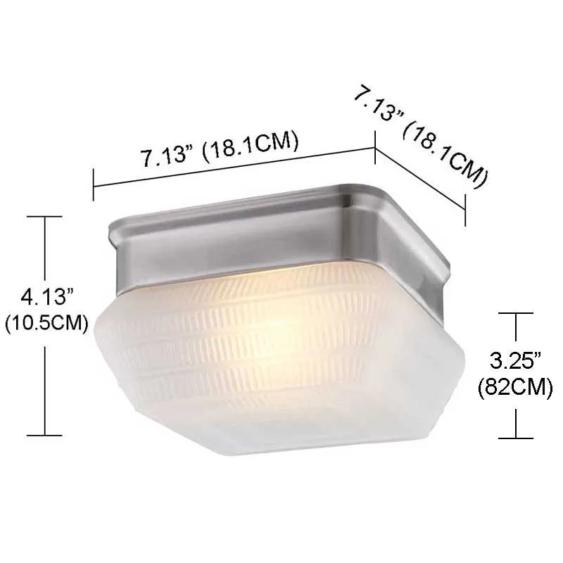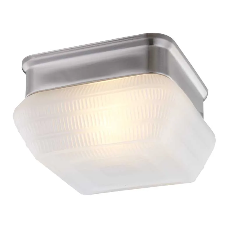 Traditional LED Ceiling Light 1-light E26 frosted Square glass shade and brushed nickel finish flush mount 75431
