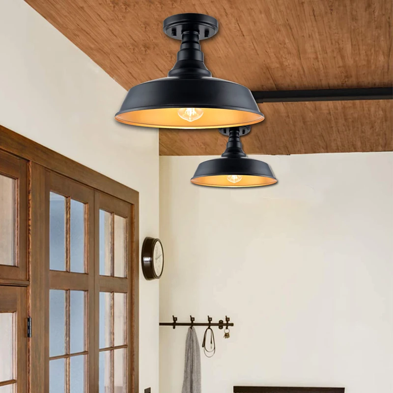 1-light Ceiling Light farmhouse flush mount white steel shade for home indoor room ceiling lighting