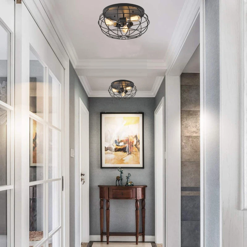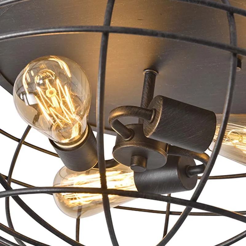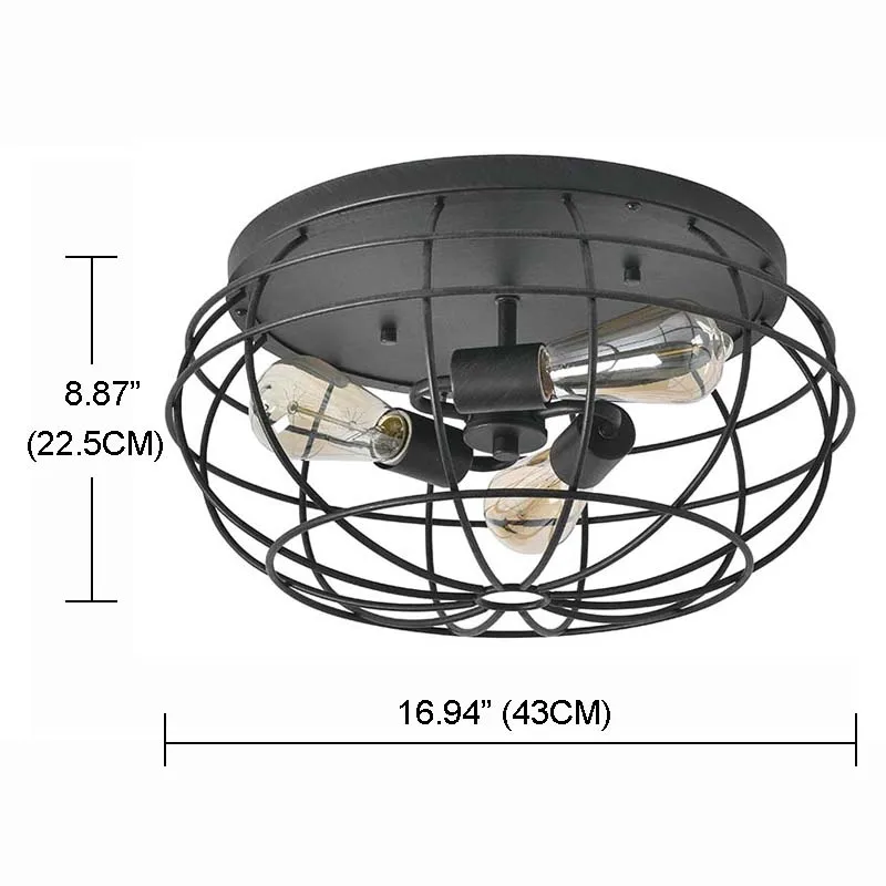 Industrial 3-Light Rustic Semi Flush Mount Ceiling Light Metal Cage for living room All mounting hardware