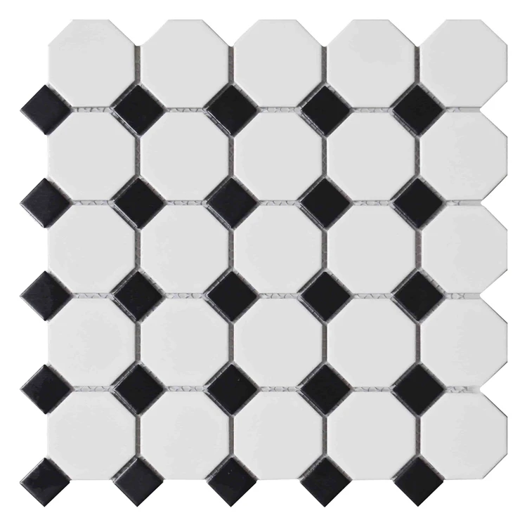 Octagon Black Mix White Glazed Mosaic And Porcelain Wall Tile