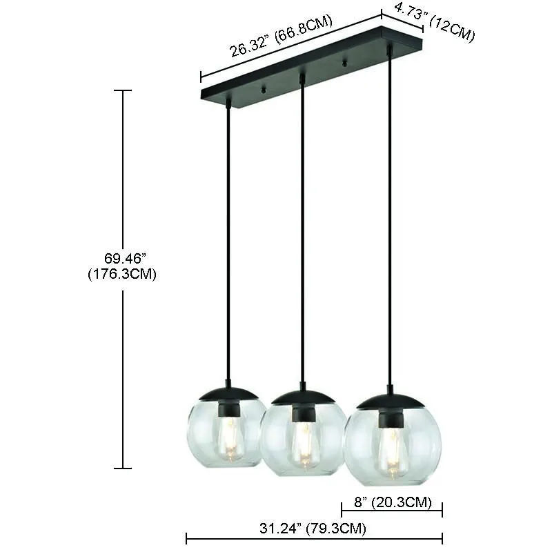 Wholesale new design 3-light pendant with black finish and clear glass shade modern chandelier