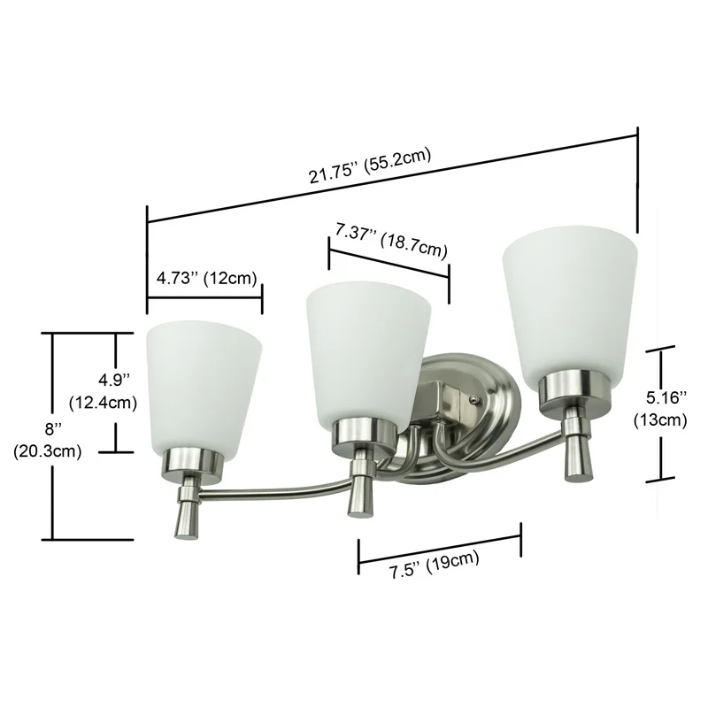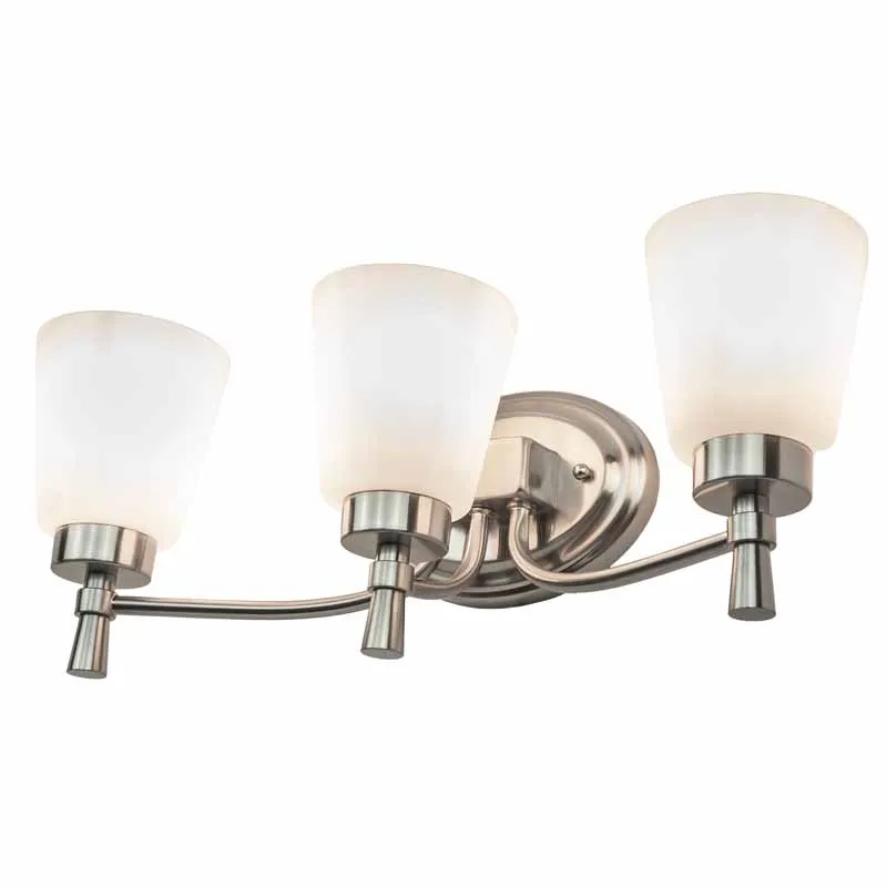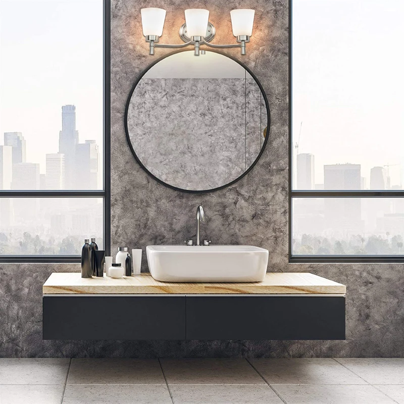 3 light vanity light in plating finish with white glass private modern bathroom led light