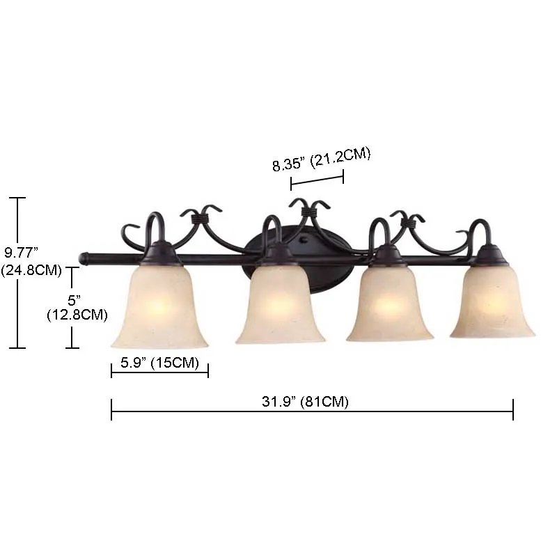 4-light Vanity Light with amber glass shade for bathroom indoor wall light