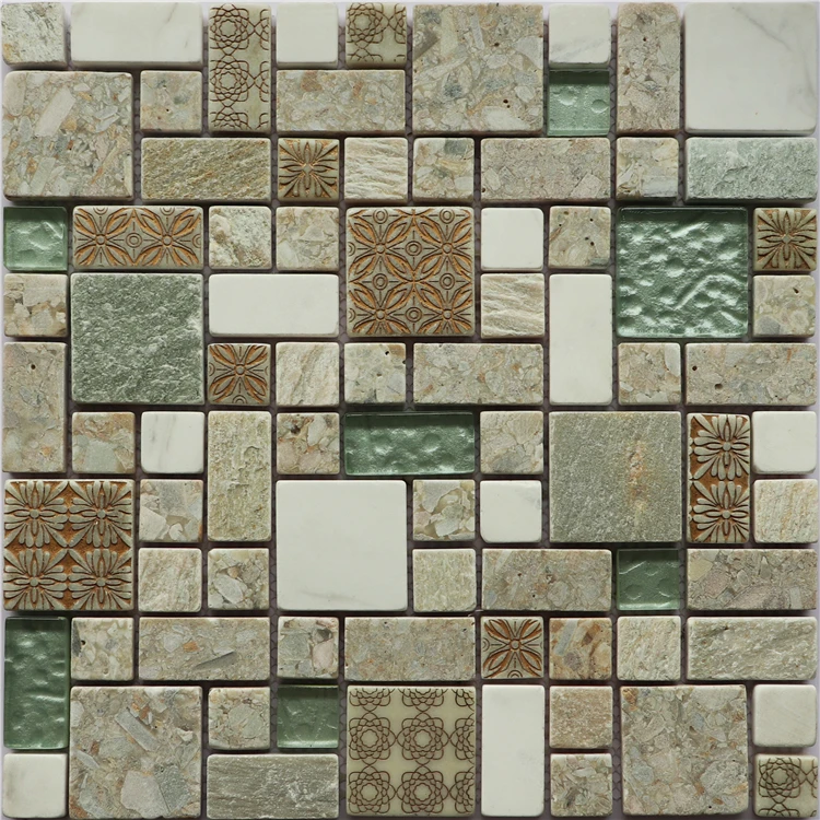 首页 石材、瓷砖、地板、墙面材料 马赛克 石材马赛克 Wall Decorate Glass Mixed Stone Mosaic for Bathroom Decoration