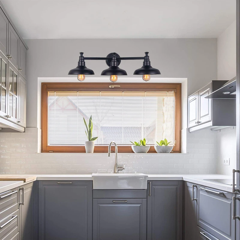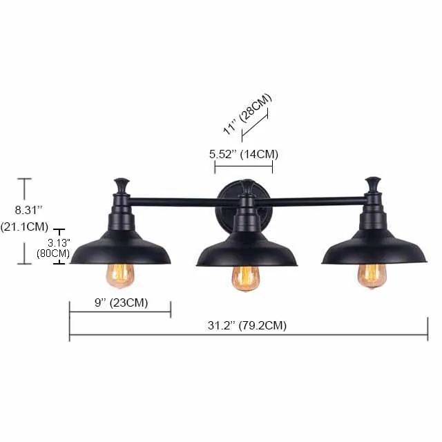 Industrial LED wall light 3-light steel shade and black finish decorative indoor wall lamp