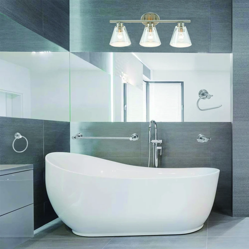 Wholesale Wall Sconce vanity light 3 light brushed nickel finish clear glass shade include the bath set