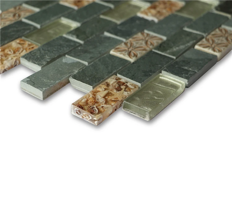 首页 石材、瓷砖、地板、墙面材料 马赛克 石材马赛克 23x48 Resin Mixed Glass Stone Mosaic Supplies For Outdoor Decorative