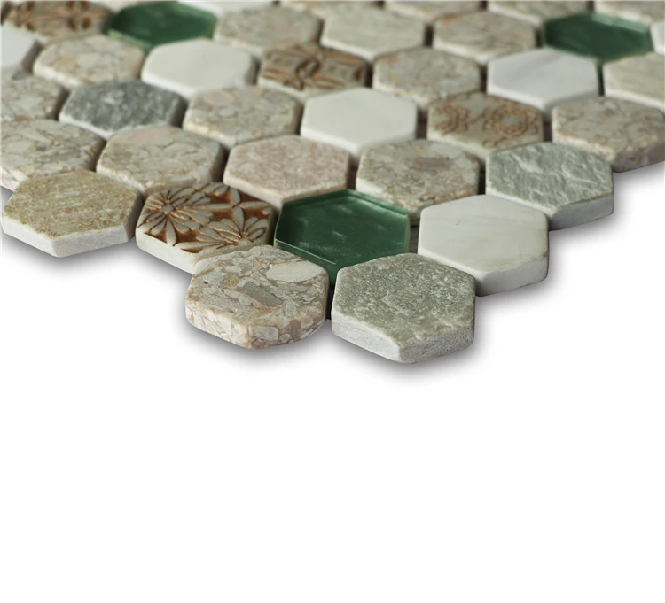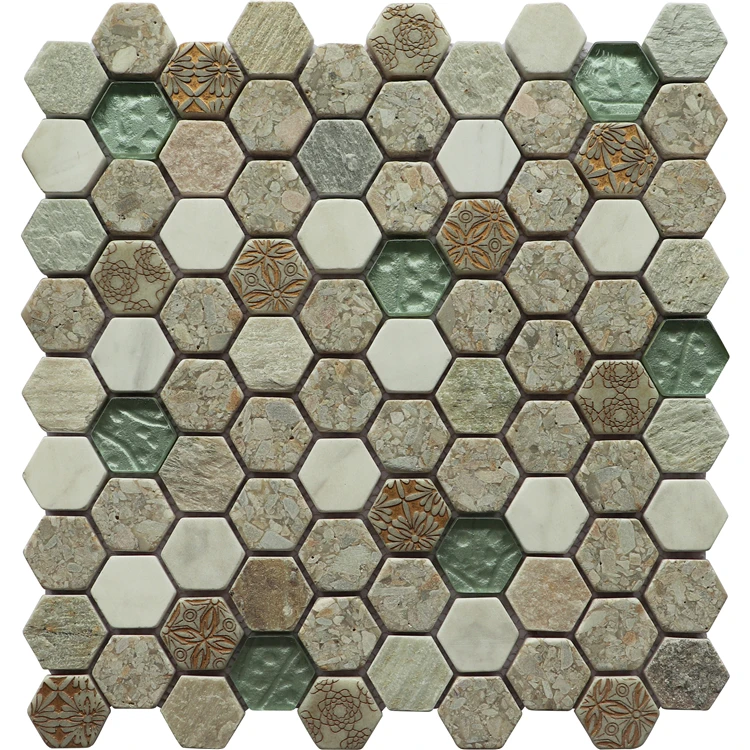 Hexagon Outdoor Floor Mix Color Stone Mosaic Tile