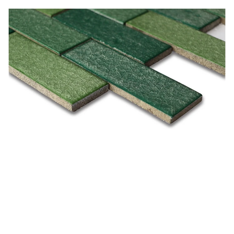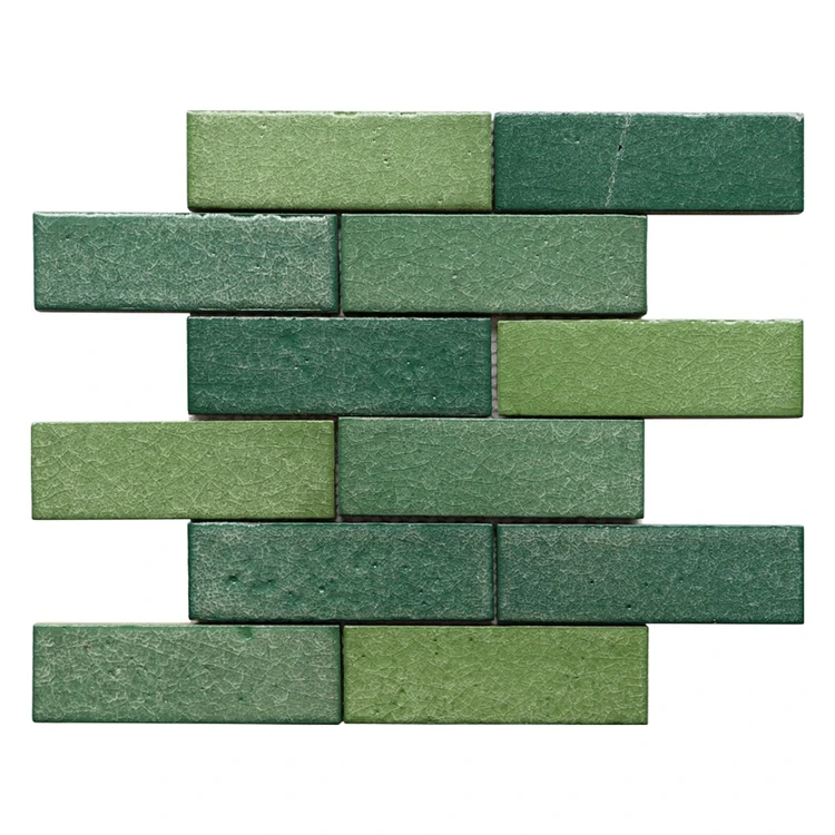 Glazed Lava Brick Stone Tile Strip Marble Cream Green Mosaic