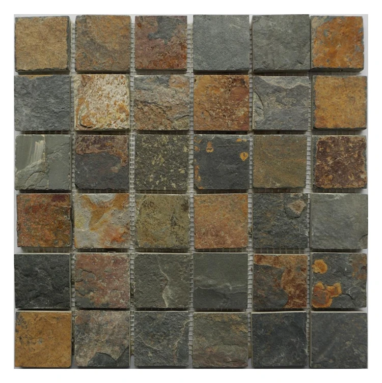首页 石材、瓷砖、地板、墙面材料 马赛克 石材马赛克 Rusty Slate Wall Tile Water Jet Square Mosaic Stone For Decoration