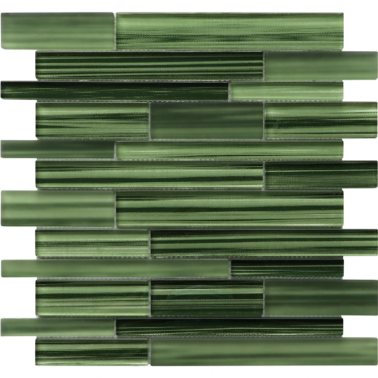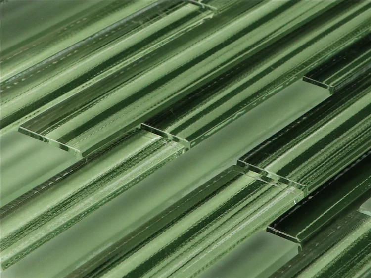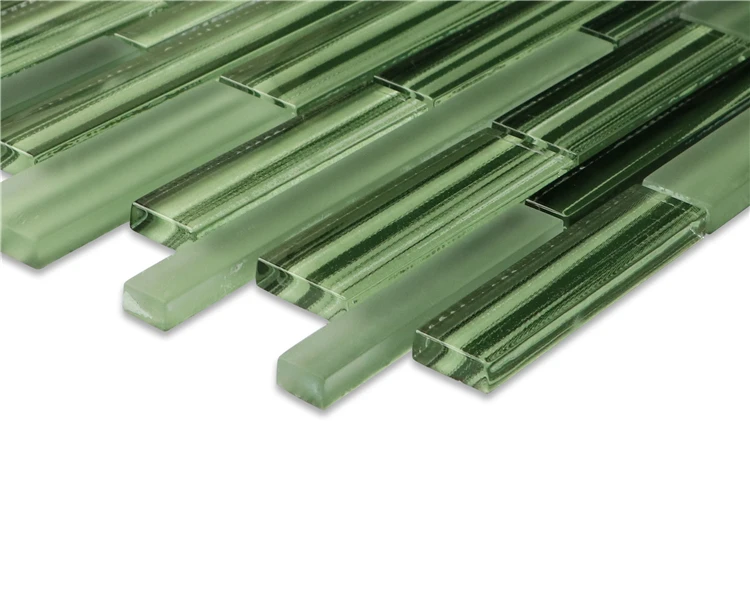 Glossy Decorative Beautiful Crystal Glass Strip Mosaic Green Glass Bathroom Wall Mosaic Tile