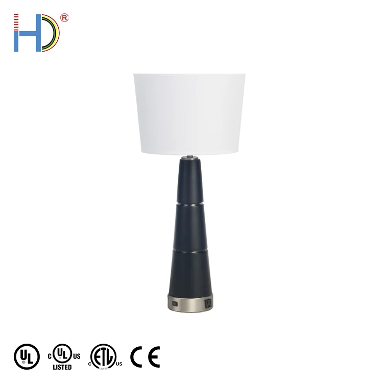 Decorate Wood Tones Finish White Color Brushed Nickel Base Restaurant Table Lamp