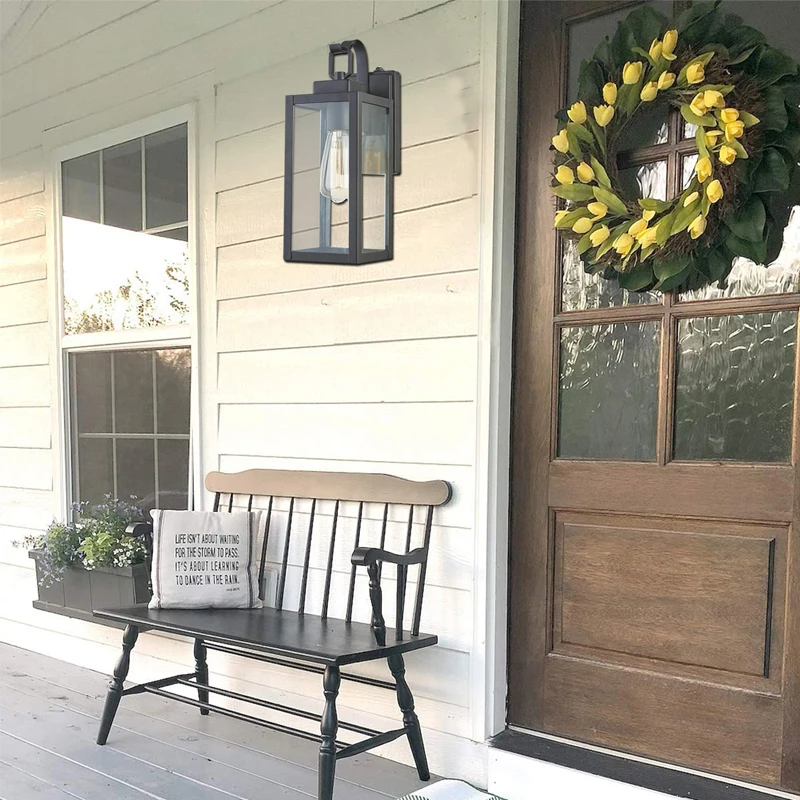 outdoor Wall Mount Motion sensor Waterproof Wall Lights matte black box E26 bulb lantern wall light