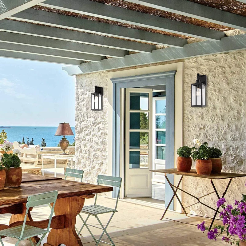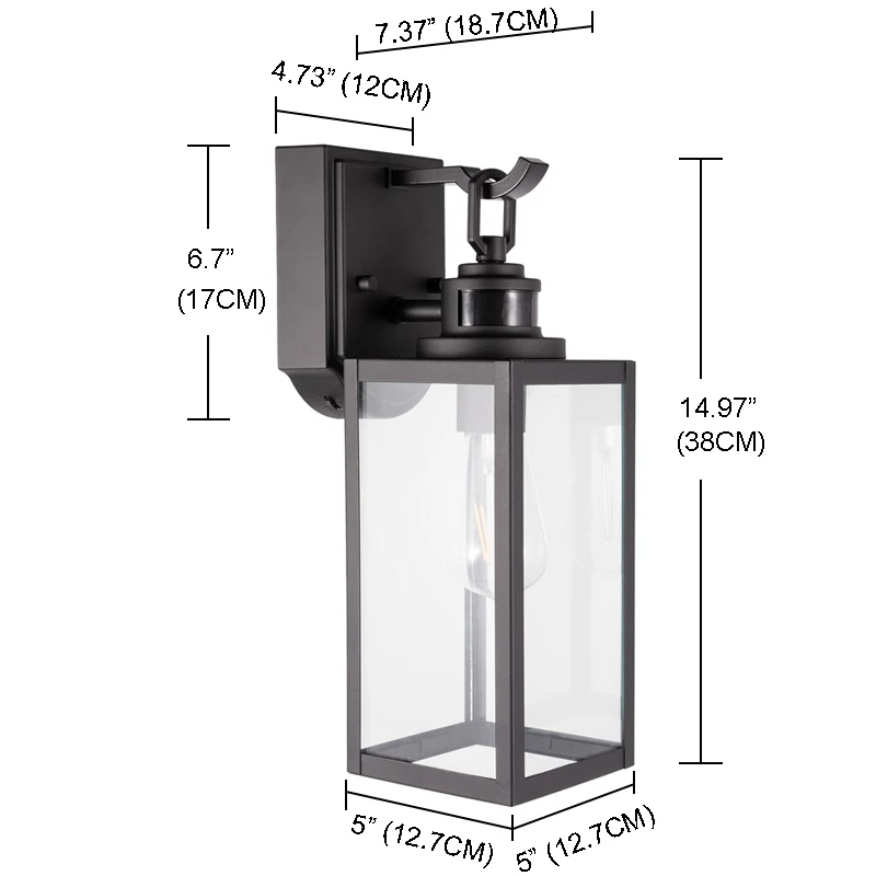 New design 1 Light outdoor light black finish and clear glass shade with motion sensor wall lamp