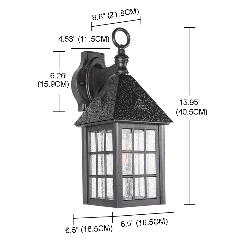 Medium Base (E-26) Outdoor Wall Light Black plastic fixture with polycarbonate glass weather-resistant and sturdy