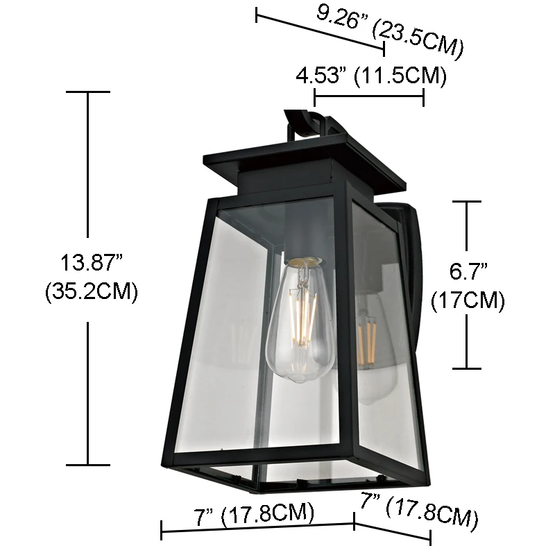 New Fashion 1 Light wall light Black Finish and clear glass shade for Outdoor light