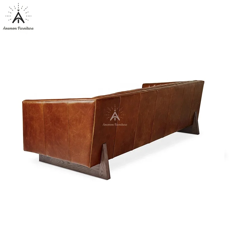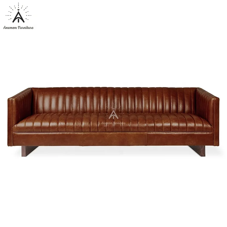 首页 住房活动家具、家用电器 客厅家具 沙发 Mid Century Brown Channel Tufted Brooklyn Chesterfield Leather Sofa (AF CS002 Brooklyn)