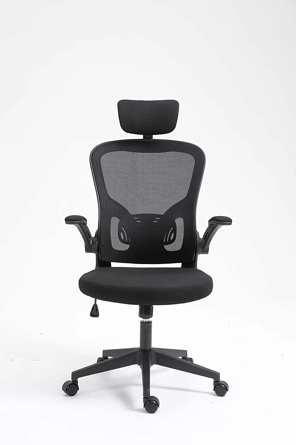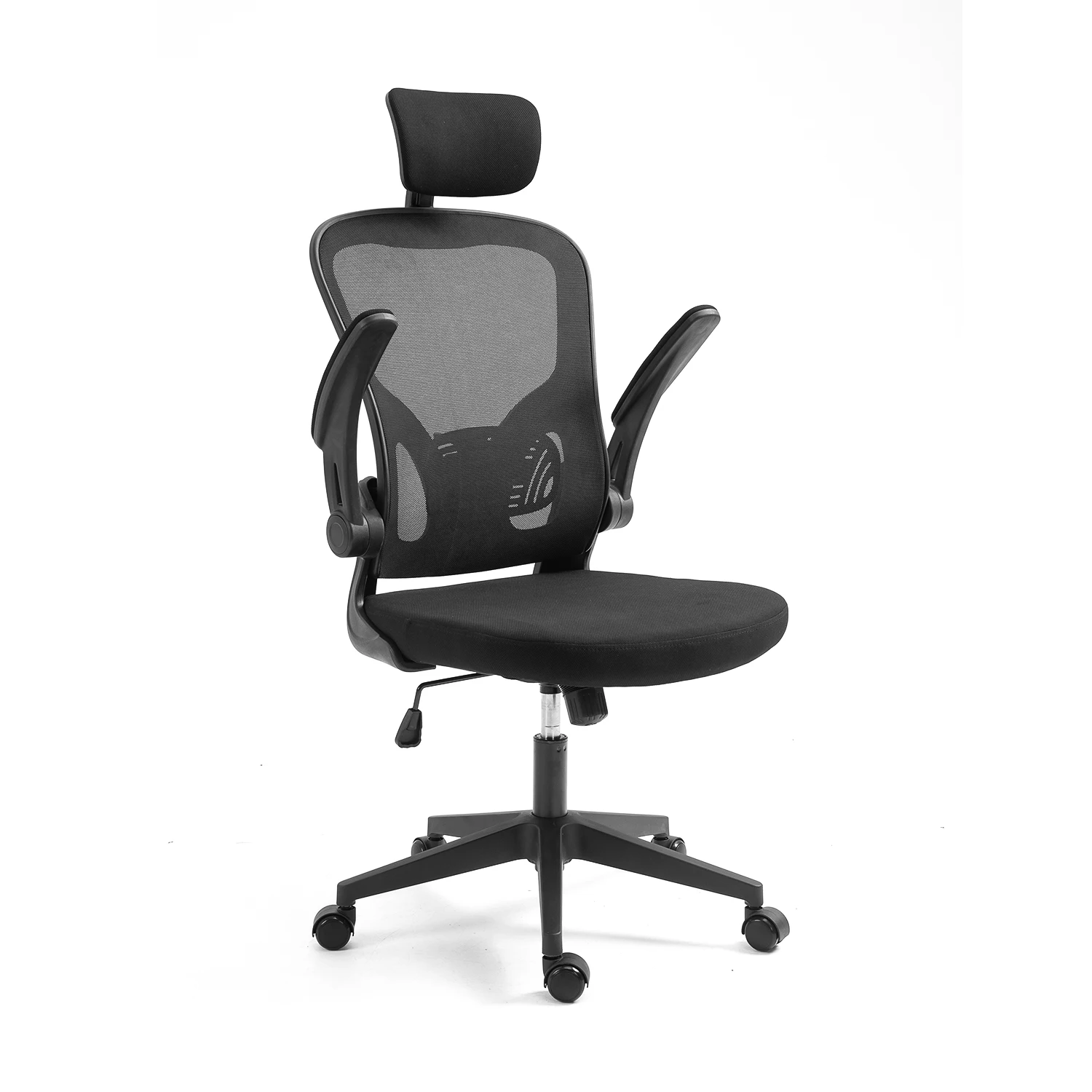 Swivel Mesh Task Chair Computer Desk Chair with Lumbar Support Adjustable Headrest and Flip-up Arms Black