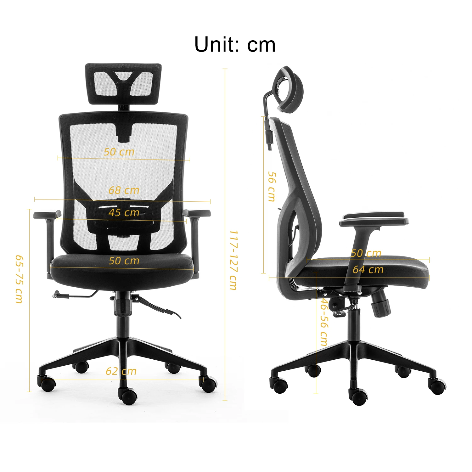Reclining home office ergonomic mesh chair with adjustable back support and headrest