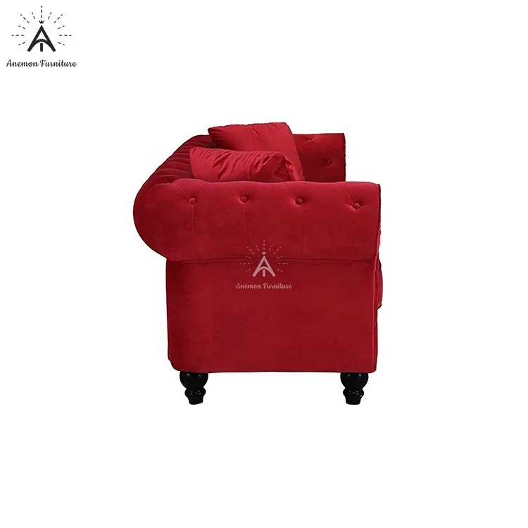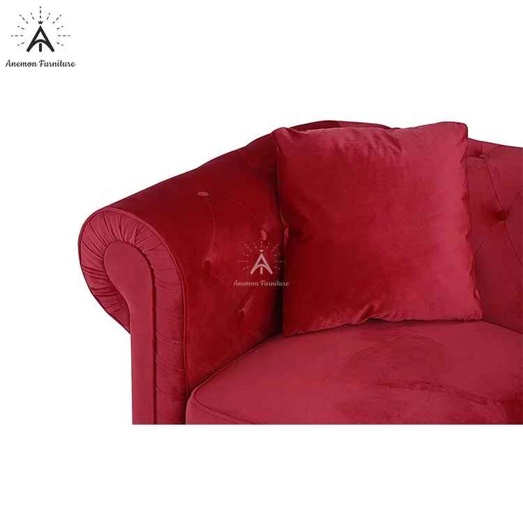 首页 住房活动家具、家用电器 客厅家具 沙发 Edwina Ancient Red Scroll Arm Tufted Button Chesterfield Crushed Velvet Sofa (AF CS007 Edwina-3)
