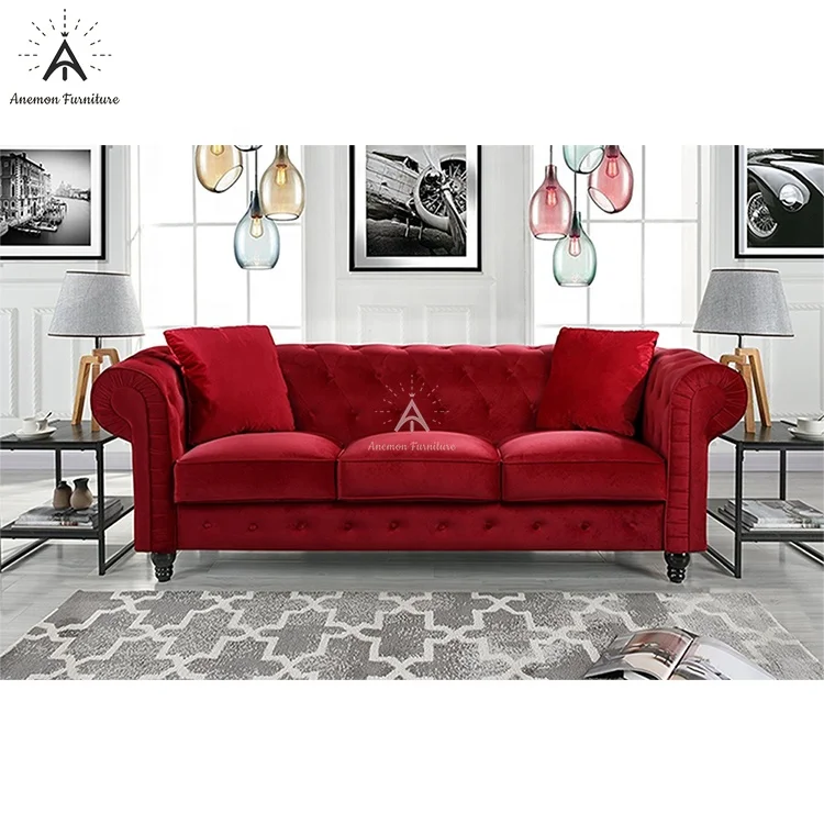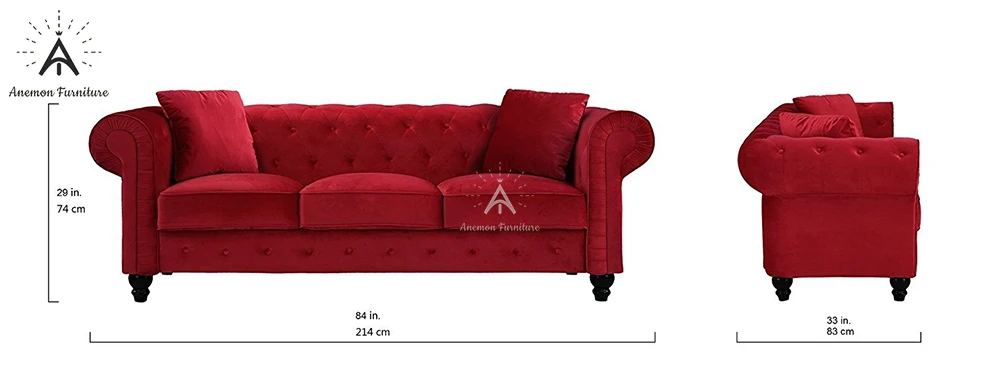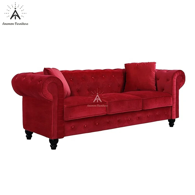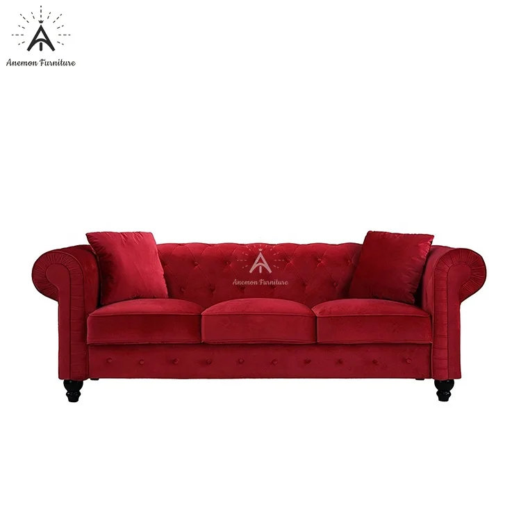 Edwina Ancient Red Scroll Arm Tufted Button Chesterfield Crushed Velvet Sofa (AF CS007 Edwina-3)