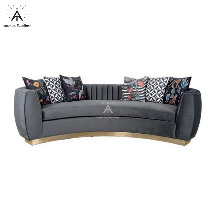 首页 住房活动家具、家用电器 客厅家具 沙发 Dark Gray Curved Tufted Velvet Sofa for Living Room (AF SM005)
