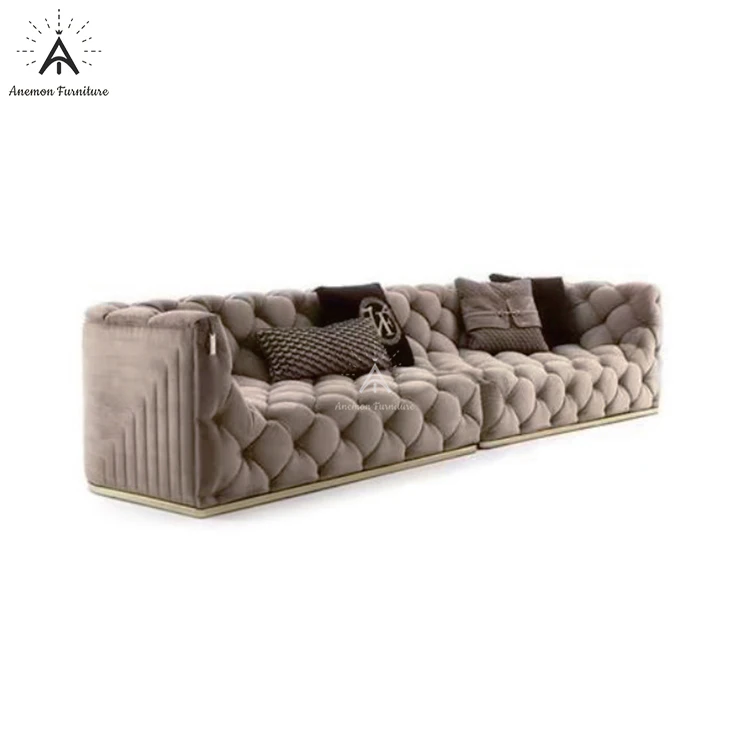 首页 住房活动家具、家用电器 客厅家具 沙发 Contemporary Light Brown Tufted Miscrofiber Fabric Upholstery Sofa Couch for Living Room (AF SM016)