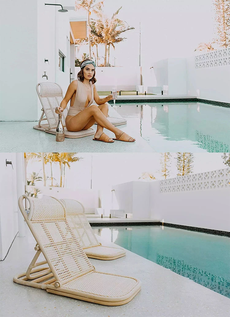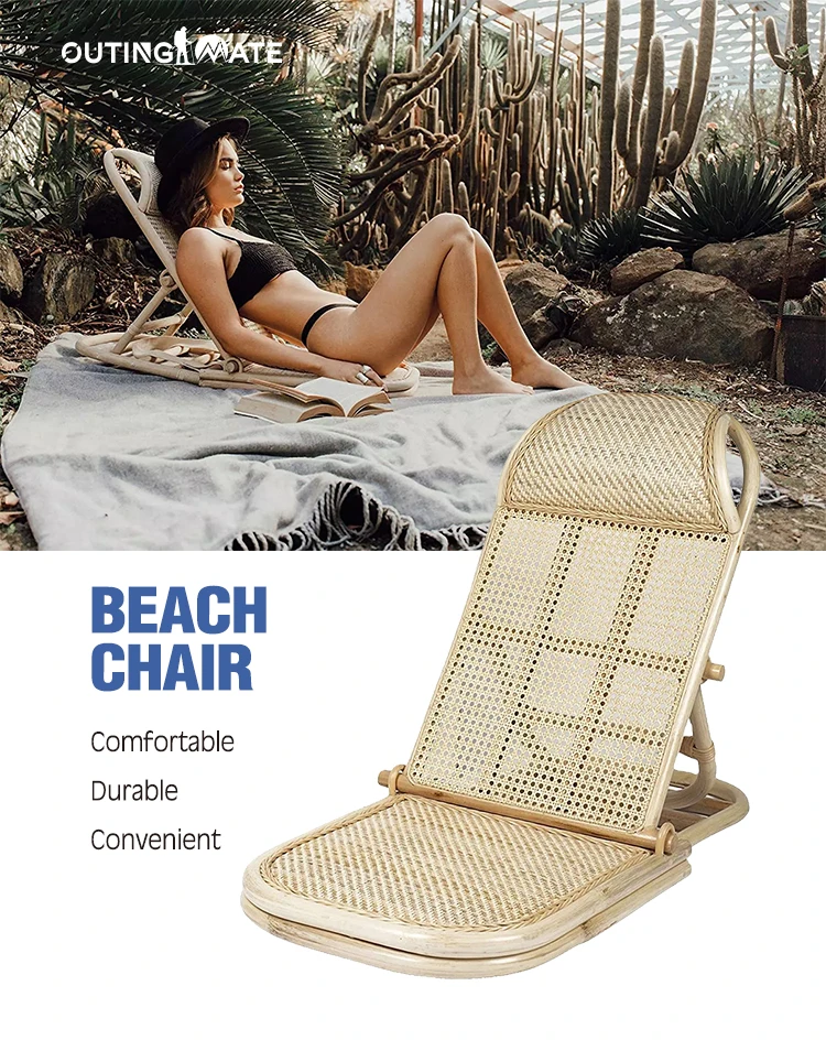 Outing Mate Original factory portable foldable backpack rattan reclining beach chair , swimming pool chair sun lounger