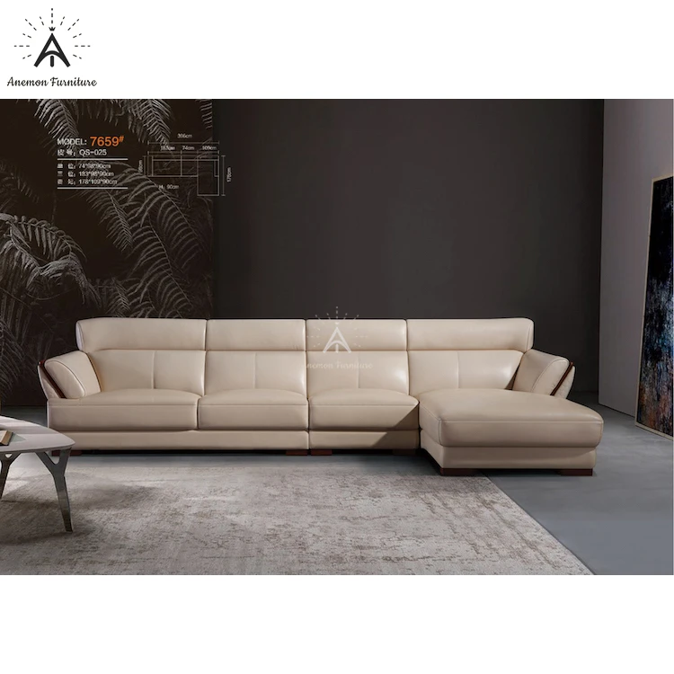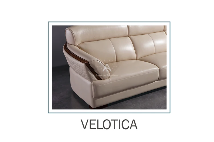 Contemporary Genuine Leather L Shaped Sofa Set with Oak Wood Armrest for Living Room (BK7659)
