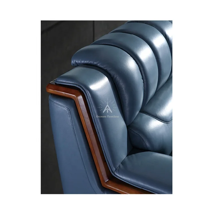首页 住房活动家具、家用电器 客厅家具 沙发 Modern Blue Genuine Leather L Shaped Sofa Set for Living Room (BKA811)
