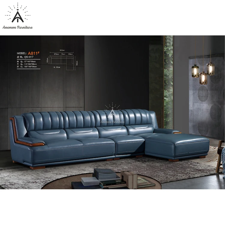 Modern Blue Genuine Leather L Shaped Sofa Set for Living Room (BKA811)
