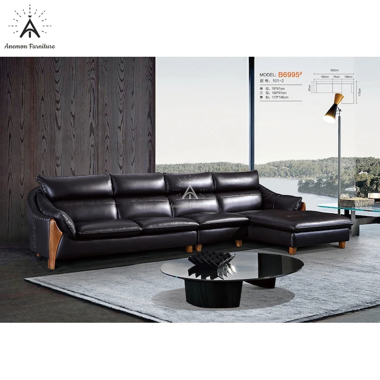 Charming Black Genuine Leather L Shaped Sofa Set for Living Room (BKB6695)