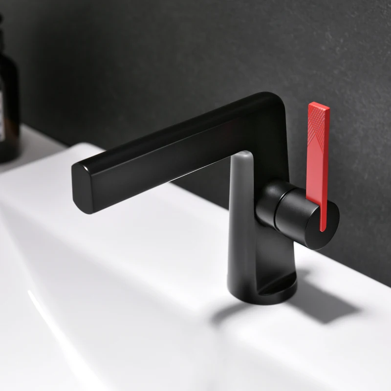 Deck Mounted Hot Cold Water Customized Colour Flat Brass Bathroom Basin Sink Tap Faucet