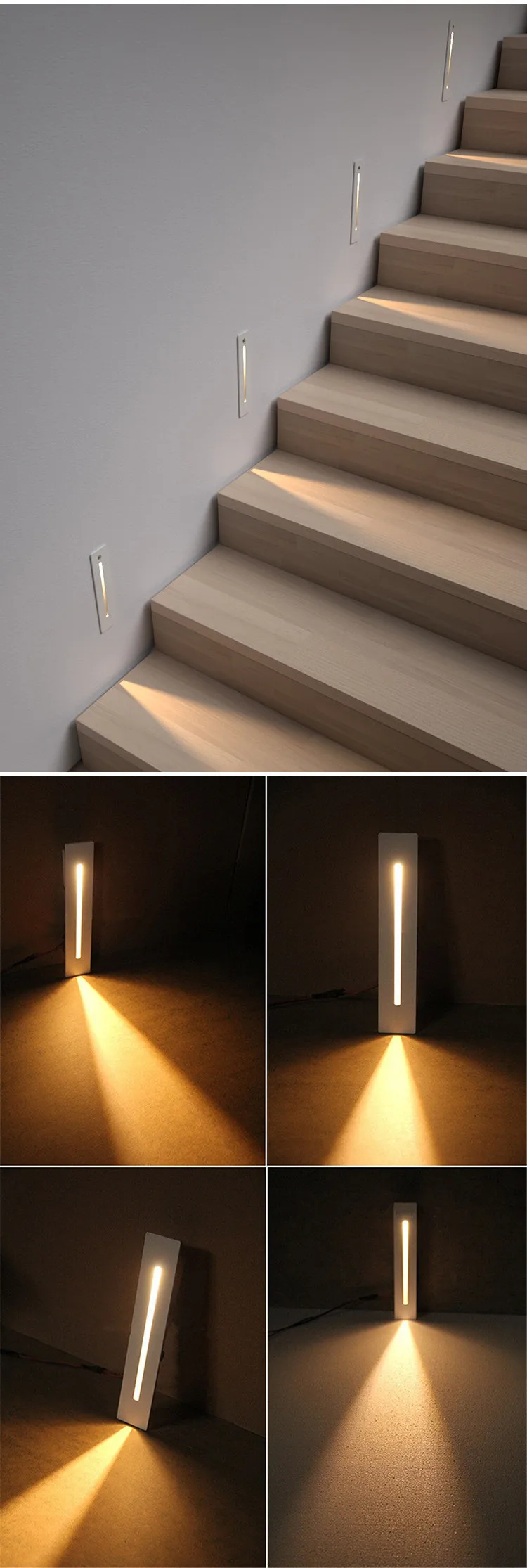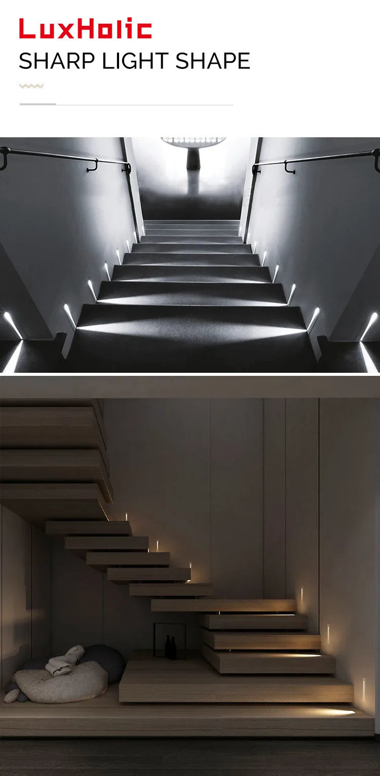 LuxHolic modern indoor home white corner square 3w foot lamp recessed motion sensor led step stair lights side staircase light