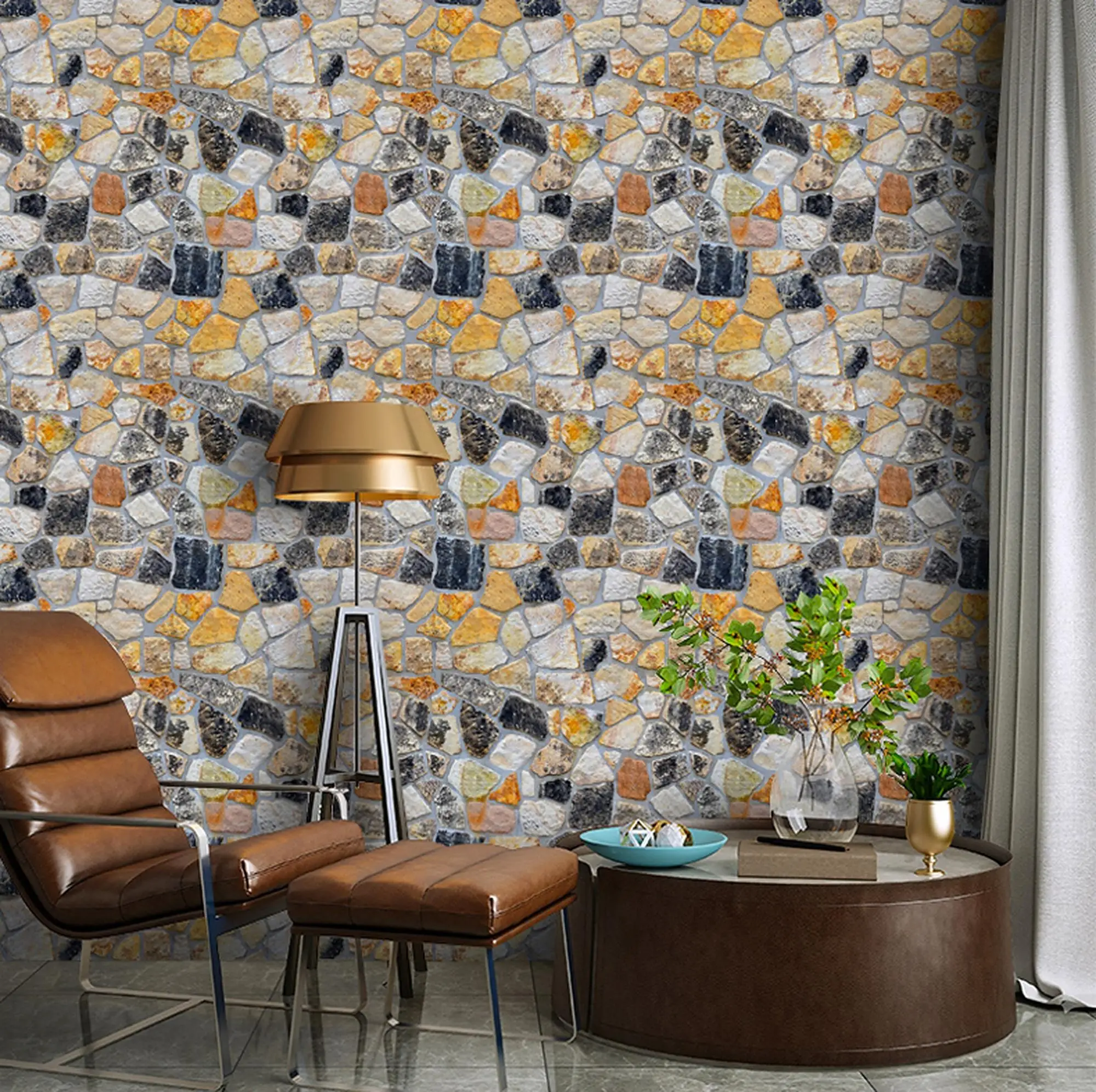 Chinese manufacturers supply cheap stone wallpaper paper roll 3d brick pvc self-adhesive wallpaper