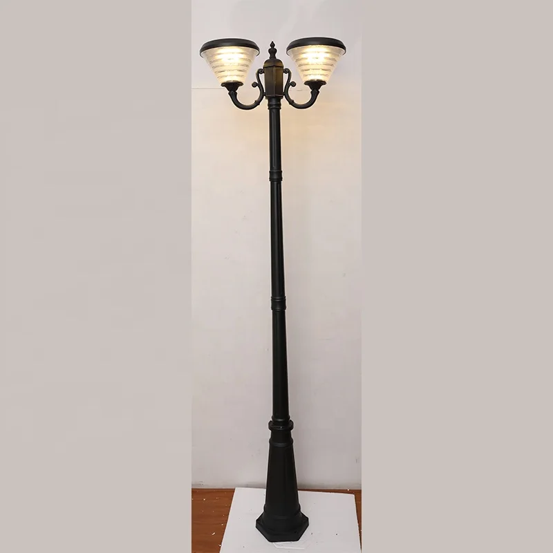 Outdoor Waterproof Antique European Style 2-head Lamp solar Garden Light Post Manufacturer