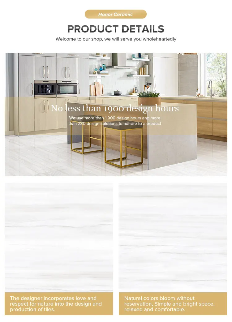 Honor Porcelain Floor Tile Polished Marble Tiles Good Quality Glazed White Wooden Look Glossy Tile for Interiorm