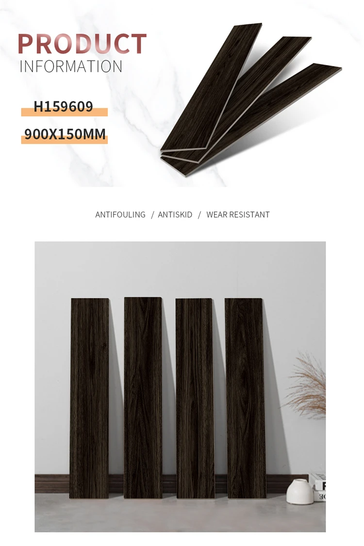 首页 石材、瓷砖、地板、墙面材料 瓷砖 仿古砖 Berich 150*900 home floor wood tile black wood tiles on sale