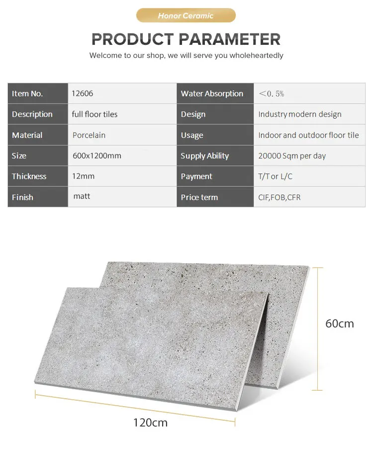 Honor Terrazzo Cement Ceramic Matte Porcelain Floor Tiles Outdoor Living Room Walls Project 600*1200 Large Glazed Tile